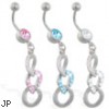 Navel Ring with Dangling Jeweled Abalone Wave Pendant