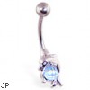 Diamond Shaped Semi Precious Stone Mounted Surgical Steel Navel Ring